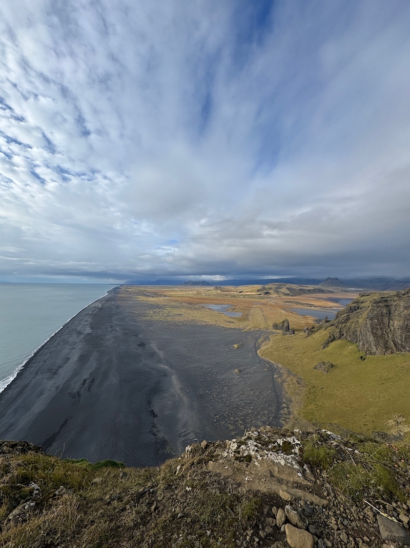 The third stop was Dyrhólaey. While it wasn't life-changing, a wave of emotion and nostalgia washed over me as I gazed outwards to sea and inwards to land. The landscape felt aesthetically apocalyptic; calm water extends as far south as the eye could see, a black sand beach separating the ocean's water from green growth and rolling hills and glaciers. It was Miller's planet with a soundtrack of rock + roll playing on repeat in my head. We walked along the summit path enjoying the view and gentle breeze.