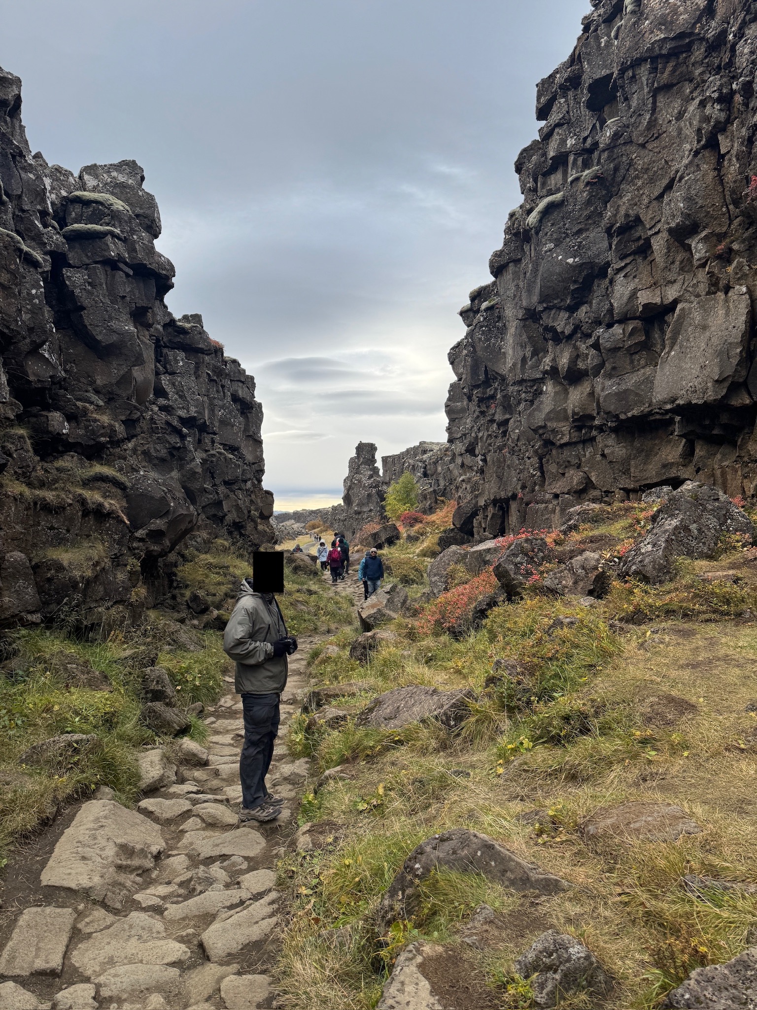 Another $42 kick in the balls thanks to breakfast later and we were off to the nearest national park, Thingvellir, for some hiking and sightseeing. This, too, felt very Iceland-y, from the barren, rocky landscape to the overcast sky and diverse groups of tourists. We visited Öxarárfoss, a waterfall, and the Silfra fissure, a rift between the North American and Eurasian tectonic plates. (Sadly, no snorkeling or scuba diving for us like plenty of people were doing.) It's pretty freakin' crazy to think that this (among other places, obviously) is the place where those plates meet and slowly drift away from each other, much to snorkeler's and diver's delight.
